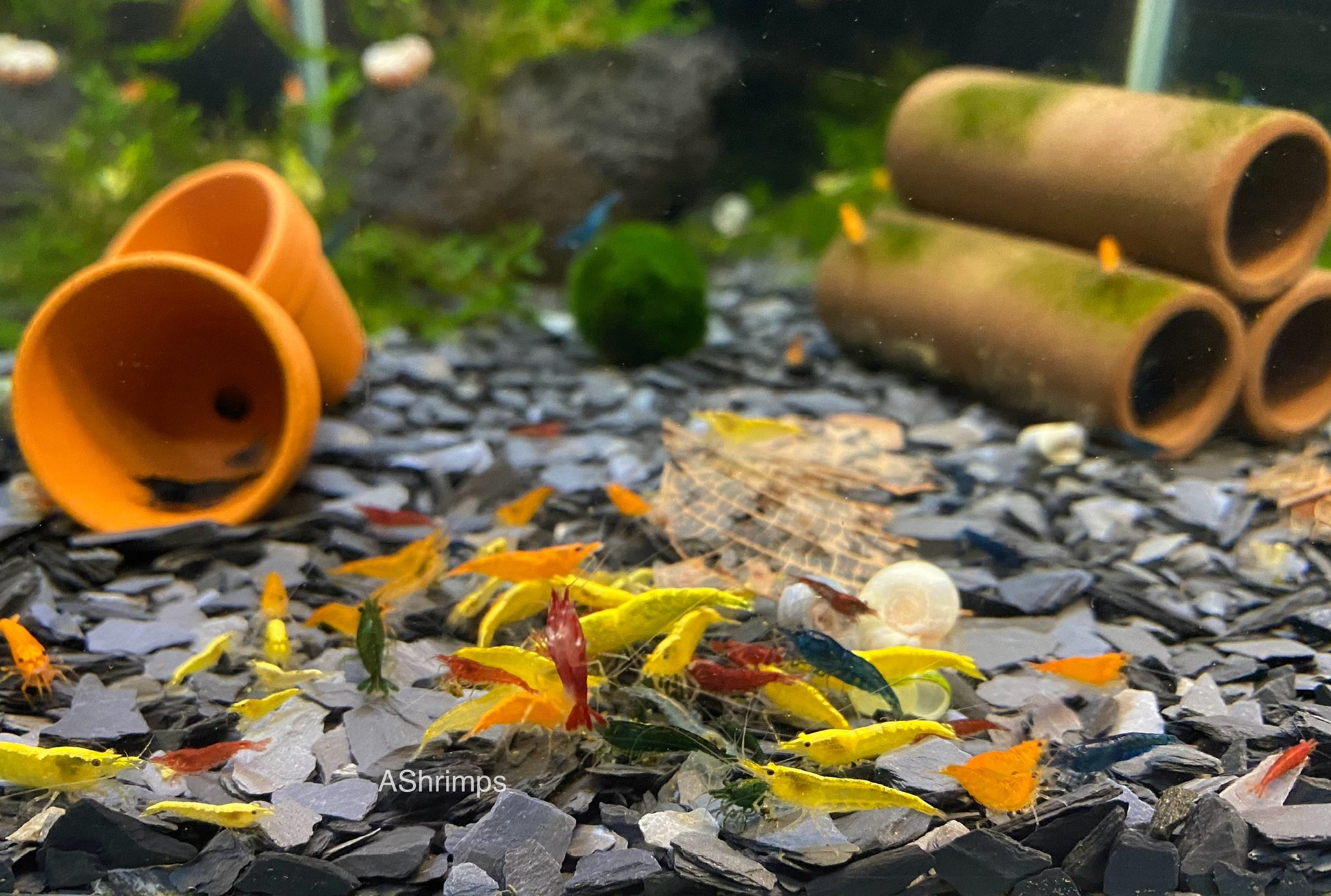 De kleurrijke mix bestaat uit garnalen die net iets afwijken van de standaard. Denk hierbij aan garnalen met een iets minder felle kleur of garnalen zonder gekleurde pootjes. Ideaal voor wie op zoek is naar een kleurrijke, maar betaalbare mix voor in het aquarium!