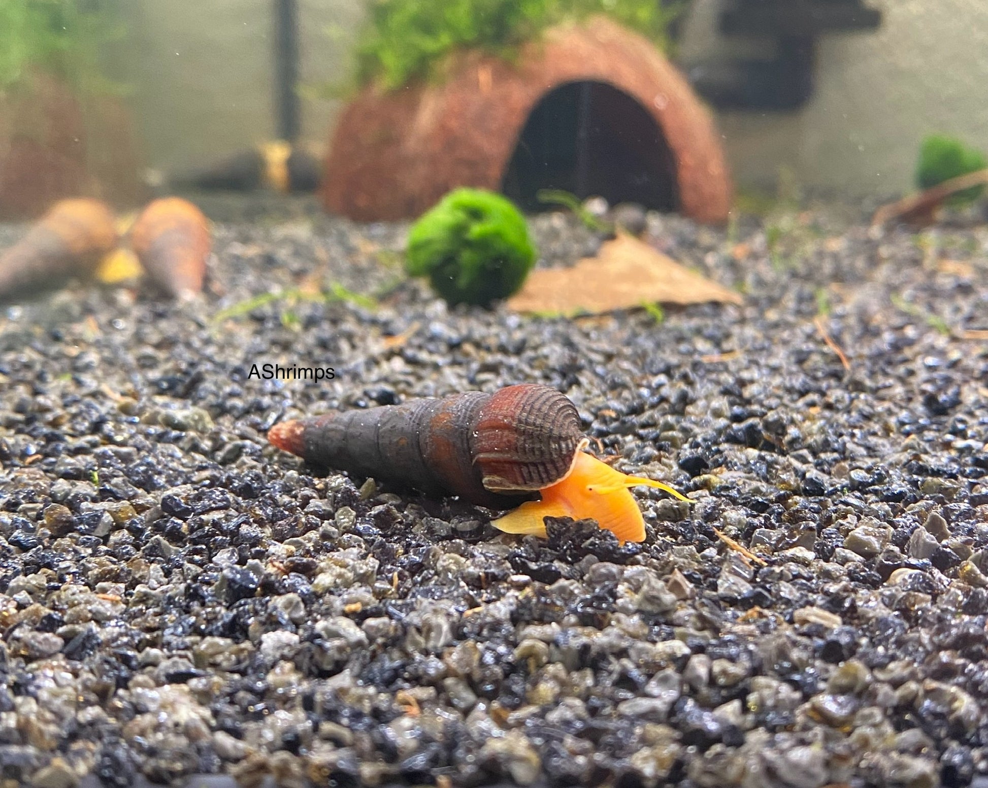 De Tylomelania Golden is een van karakter rustige, maar actieve slak, met een hele mooie oranje- tot goudgele kleur. Er is vaak natuurlijke slijtage te zien aan het uiterste gedeelte van het slakken huis, Dit is niet schadelijk voor de slak. Maximale lengte 6 cm.