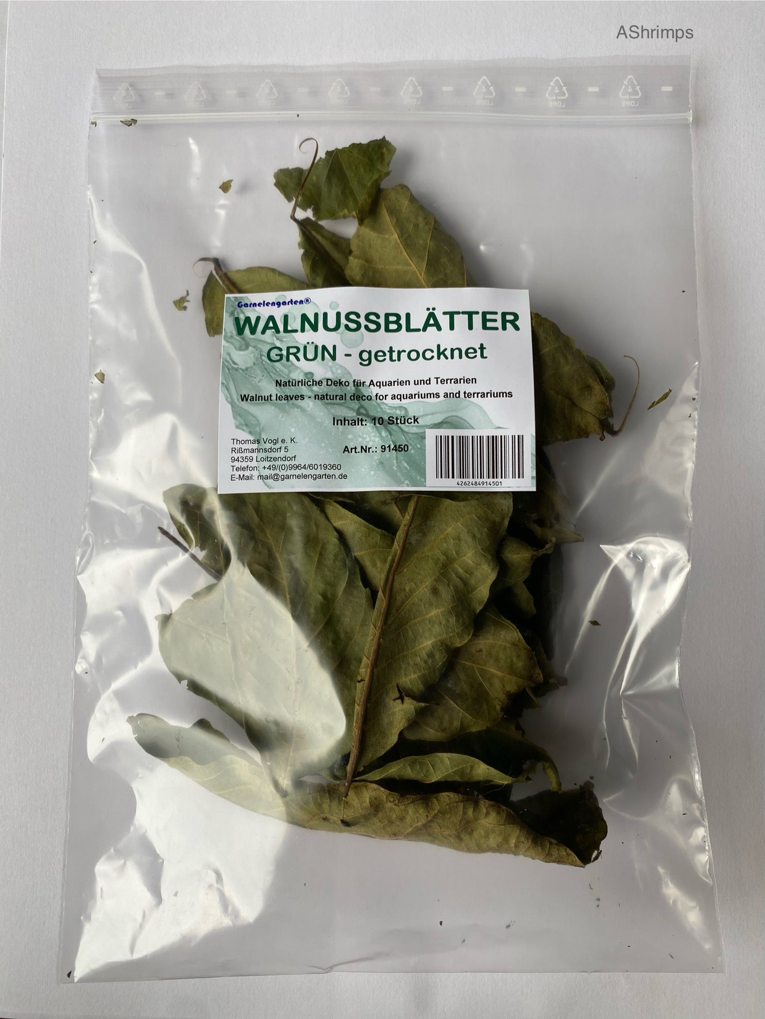 Walnoot bladeren geven langzaam waardevolle stoffen af aan het water die een gunstig effect hebben op de waterkwaliteit. Garnalen en vissen zoeken er graag beschutting tussen en eten van de zachte delen zodra de bladeren beginnen te verteren. Daarnaast dragen ze bij aan een natuurlijke uitstraling van je aquarium. 10 stuks